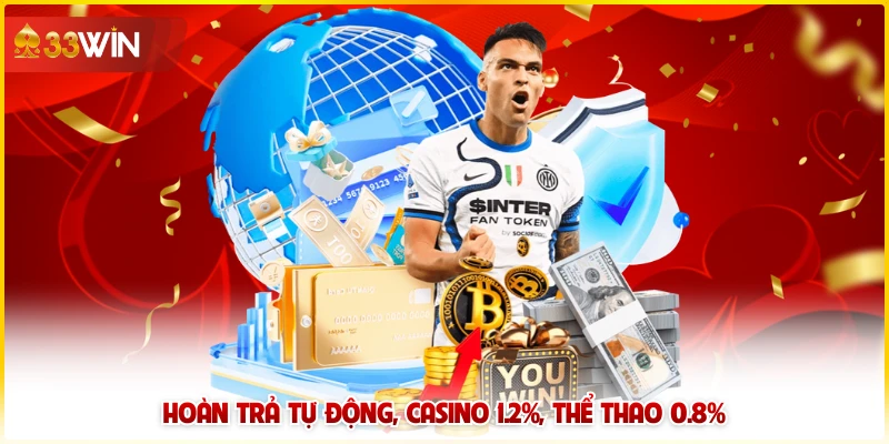 So sánh 33WIN áp dụng chính sách hoàn trả cho casino trực tuyến ở mức 1.2%, không giới hạn tổng số tiền. Đối với thể thao, mức hoàn trả đạt 0.8% và không yêu cầu cược lại. Tiền hoàn được cộng tự động vào cuối ngày, không cần thao tác thủ công từ phía người dùng.